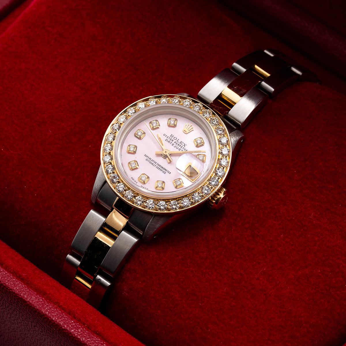 Rolex DateJust Two Tone Diamond Watch, 6917 26mm, Pink Dial with 0.90CT Diamond Bezel