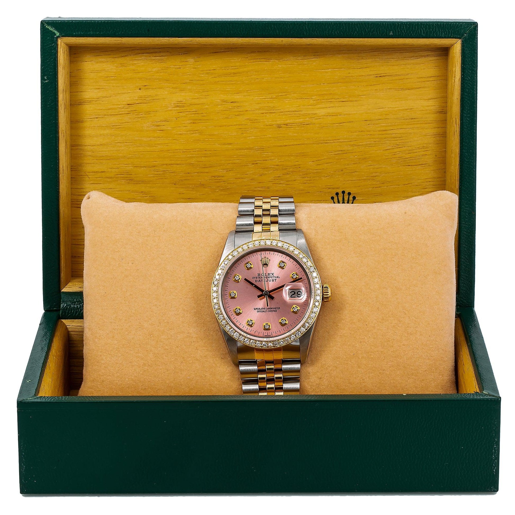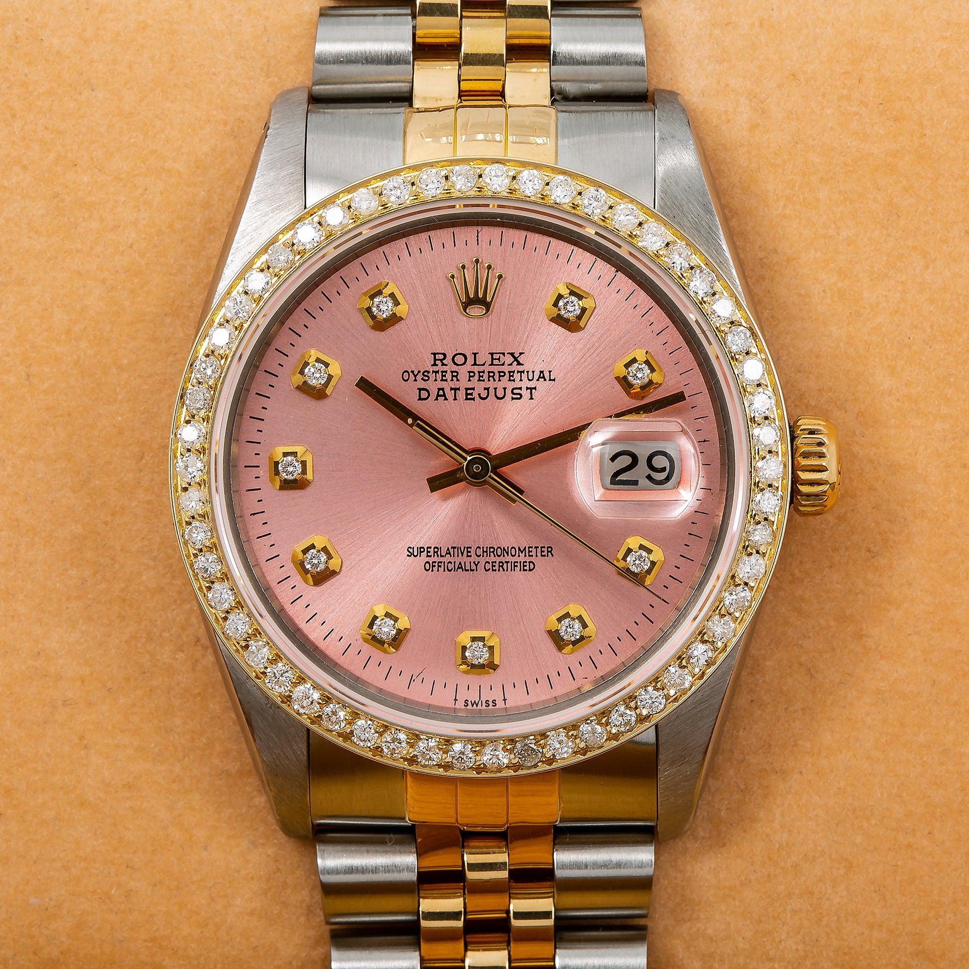 Rolex Datejust Diamond Watch, 16013 36mm, Pink Diamond Dial With 1.20 CT Diamonds
