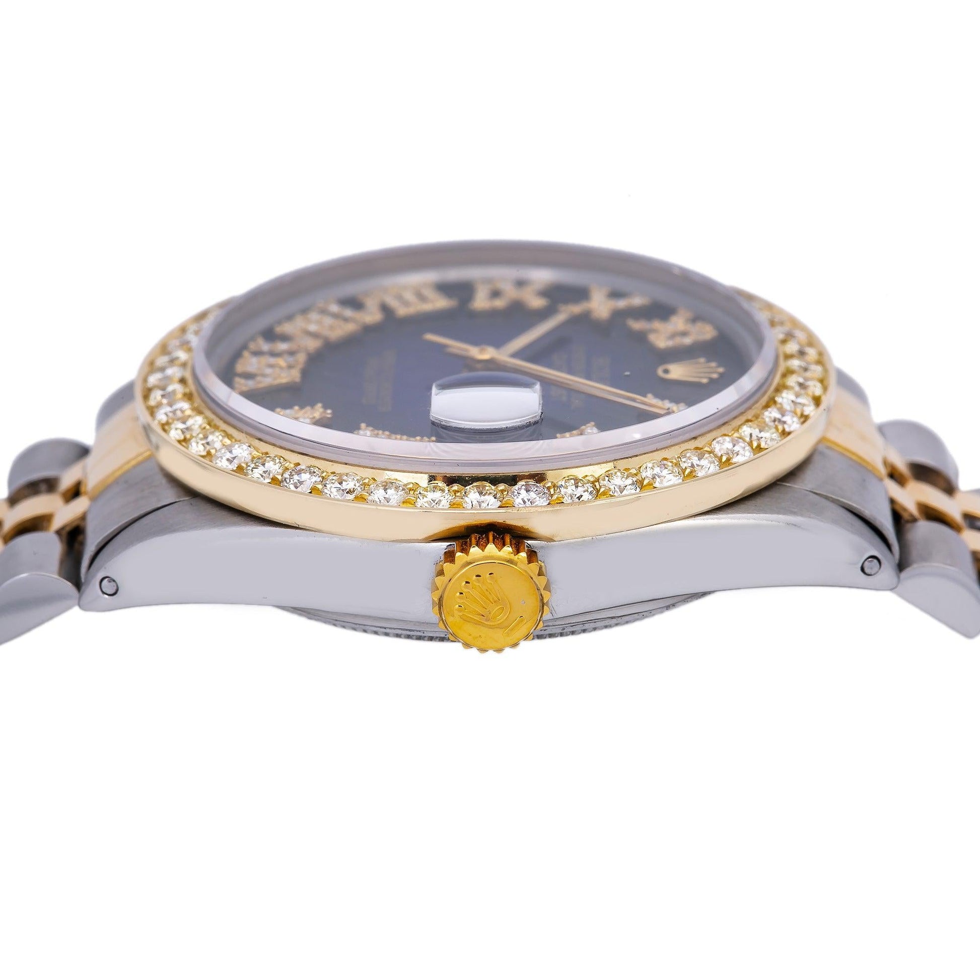 Rolex Datejust Diamond Watch 16014 36mm Blue Custom Diamond Dial With 1.35 CT Diamonds