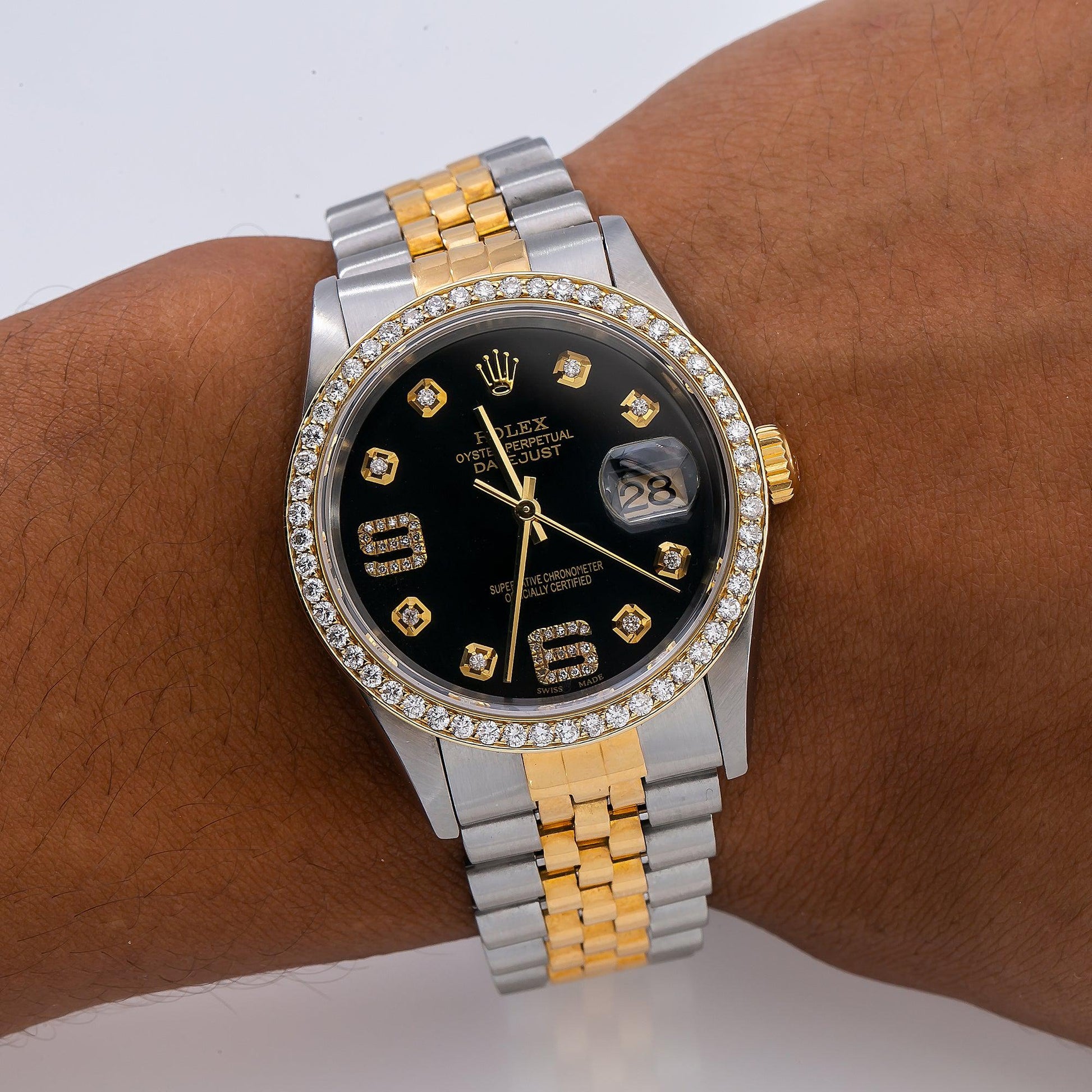 Rolex Datejust 16233 36MM Black Diamond Dial With 1.20 CT Diamonds