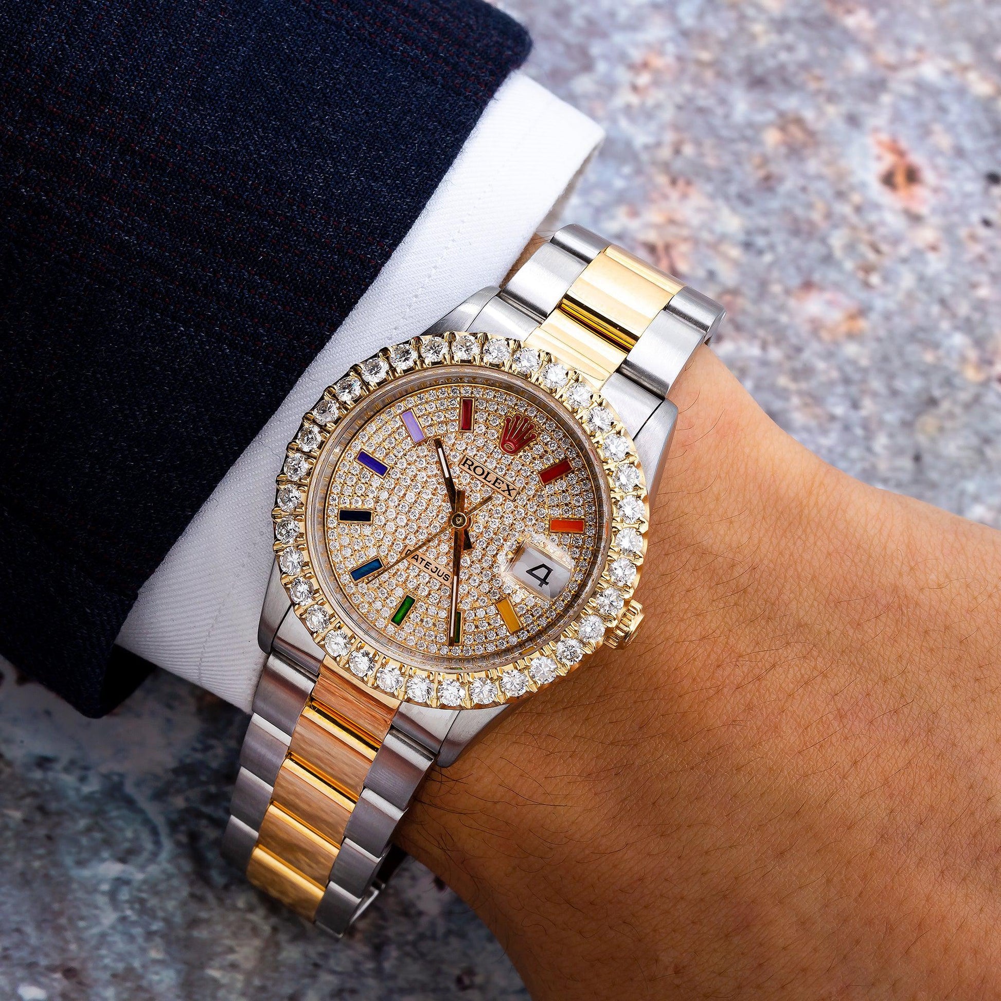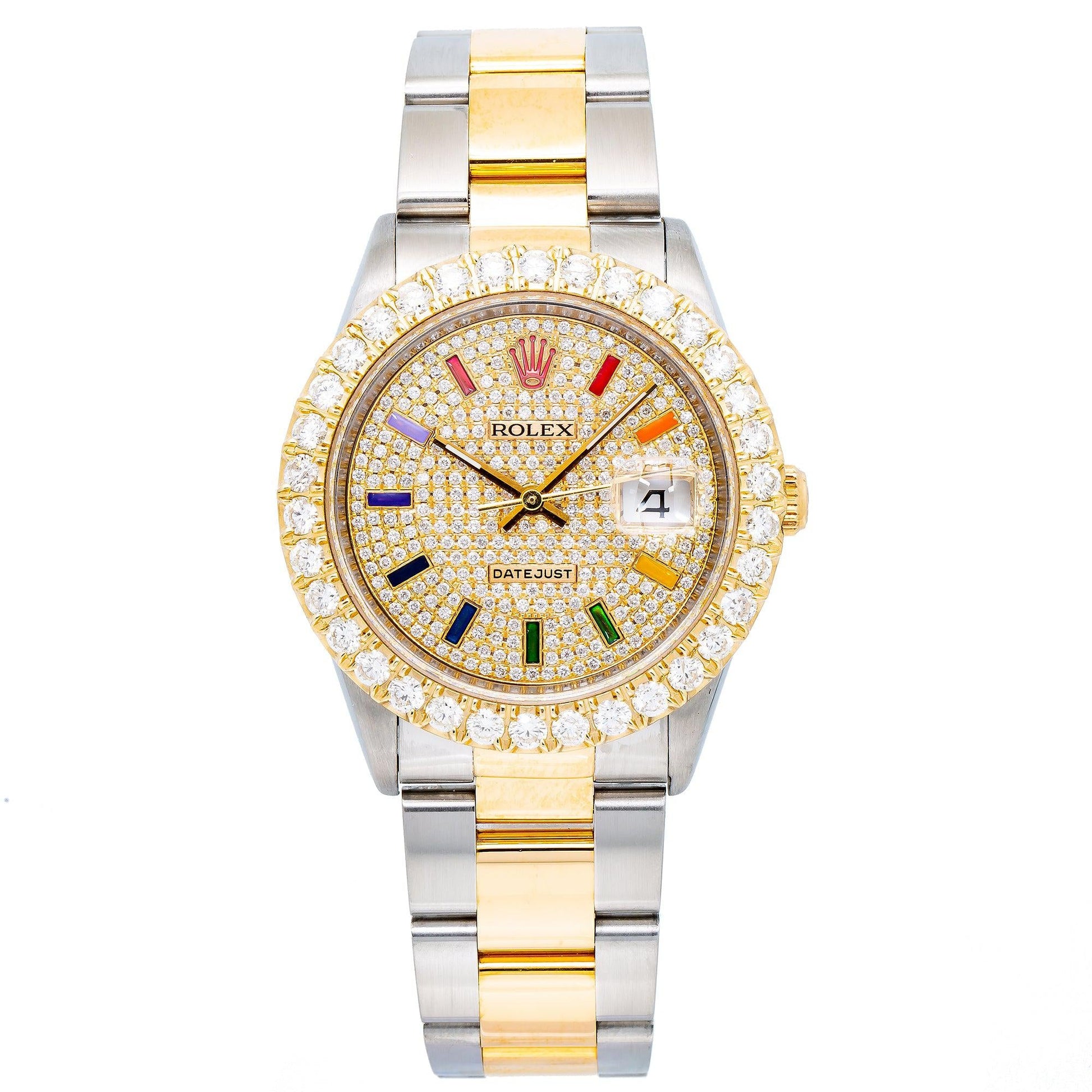 Rolex Datejust 16233 36MM Rainbow Diamond Dial With Two Tone Bracelet