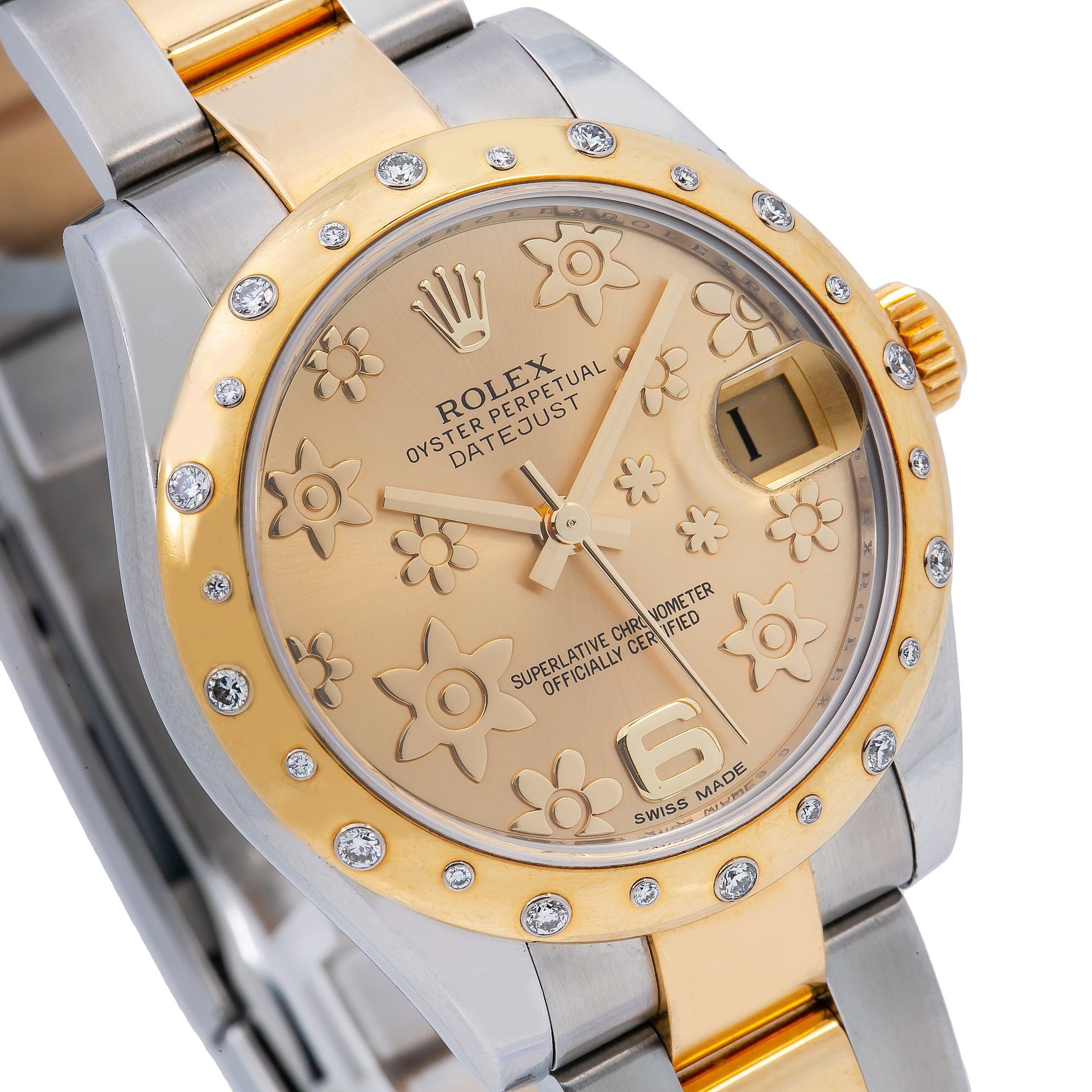 Rolex Datejust 178343 31MM Champagne Flower Dial With Two Tone Oyster Bracelet