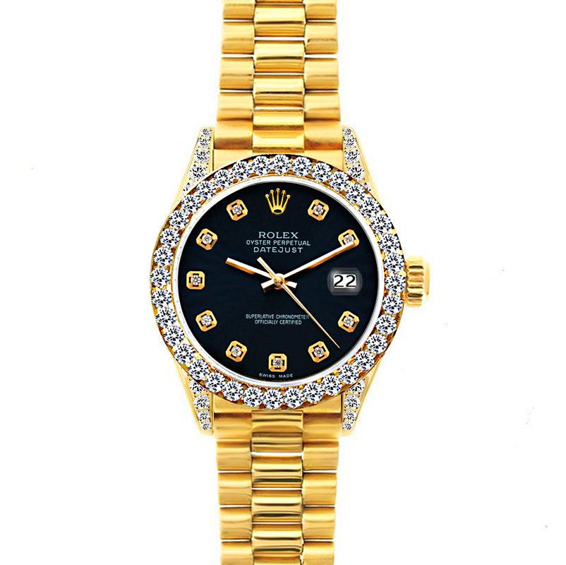 18k Yellow Gold Rolex Datejust Diamond Watch, 26mm, President Bracelet Bokara Grey Dial w/ Diamond Bezel and Lugs