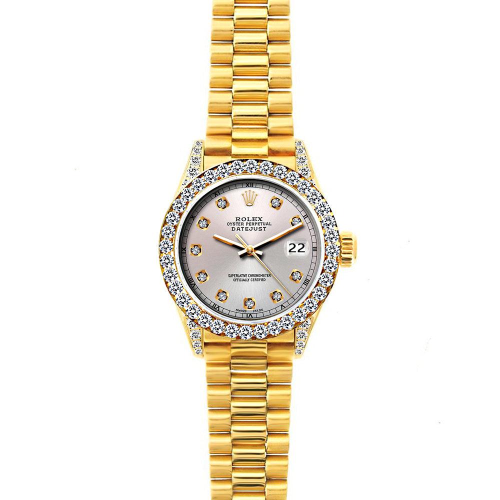 18k Yellow Gold Rolex Datejust Diamond Watch, 26mm, President Bracelet Echo Blue w/ Diamond Bezel and Lugs