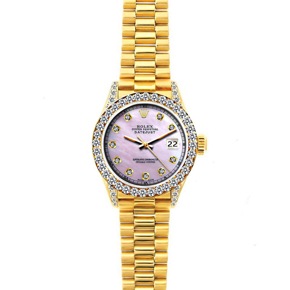 18k Yellow Gold Rolex Datejust Diamond Watch, 26mm, President Bracelet Pink Dial w/ Diamond Bezel and Lugs