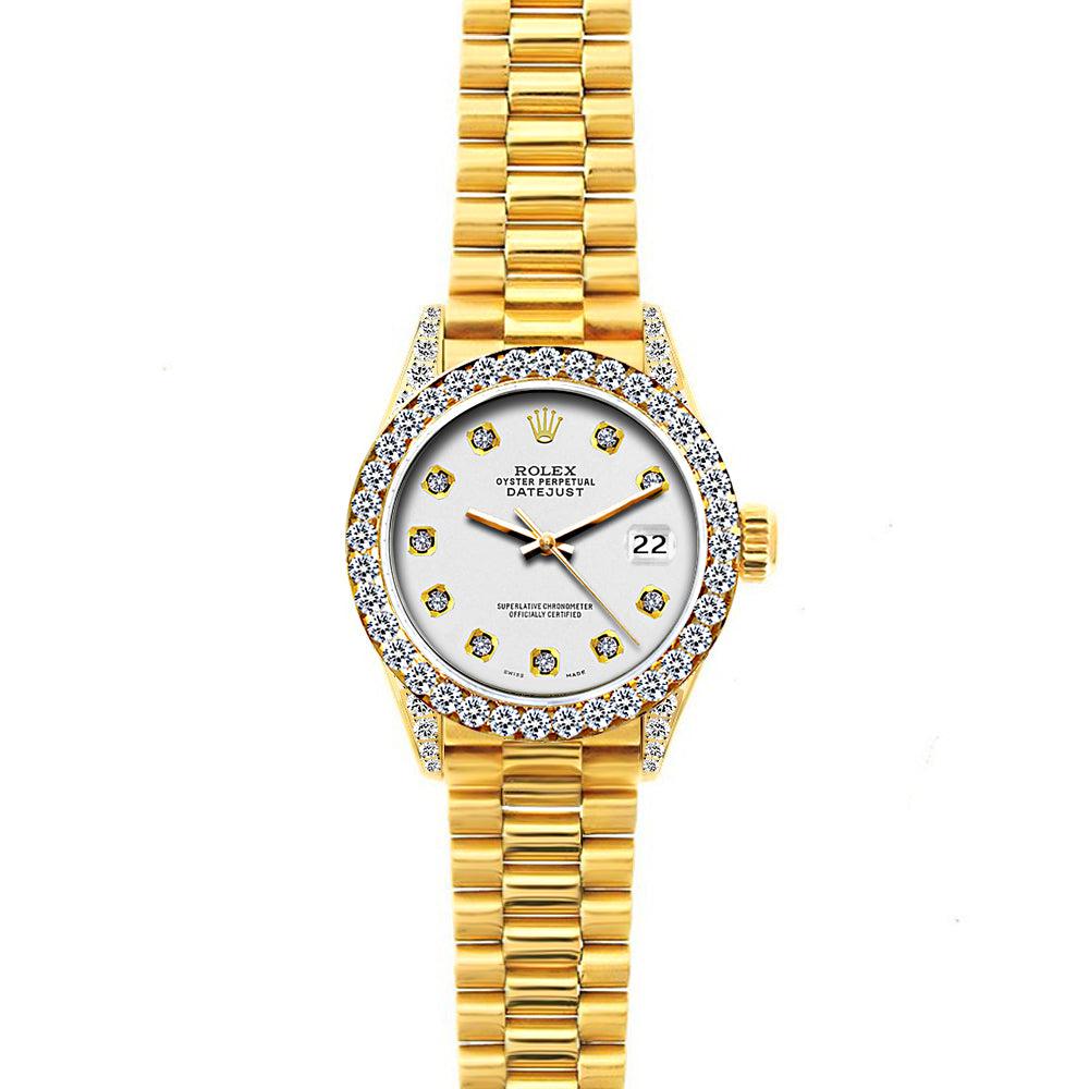 18k Yellow Gold Rolex Datejust Diamond Watch, 26mm, President Bracelet Whisper Dial w/ Diamond Bezel and Lugs