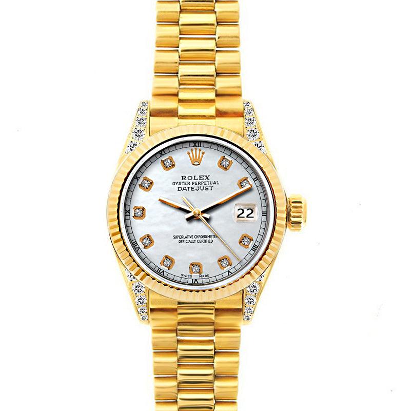 18k Yellow Gold Rolex Datejust Diamond Watch, 26mm, President Bracelet Old Lace Dial w/ Diamond Lugs