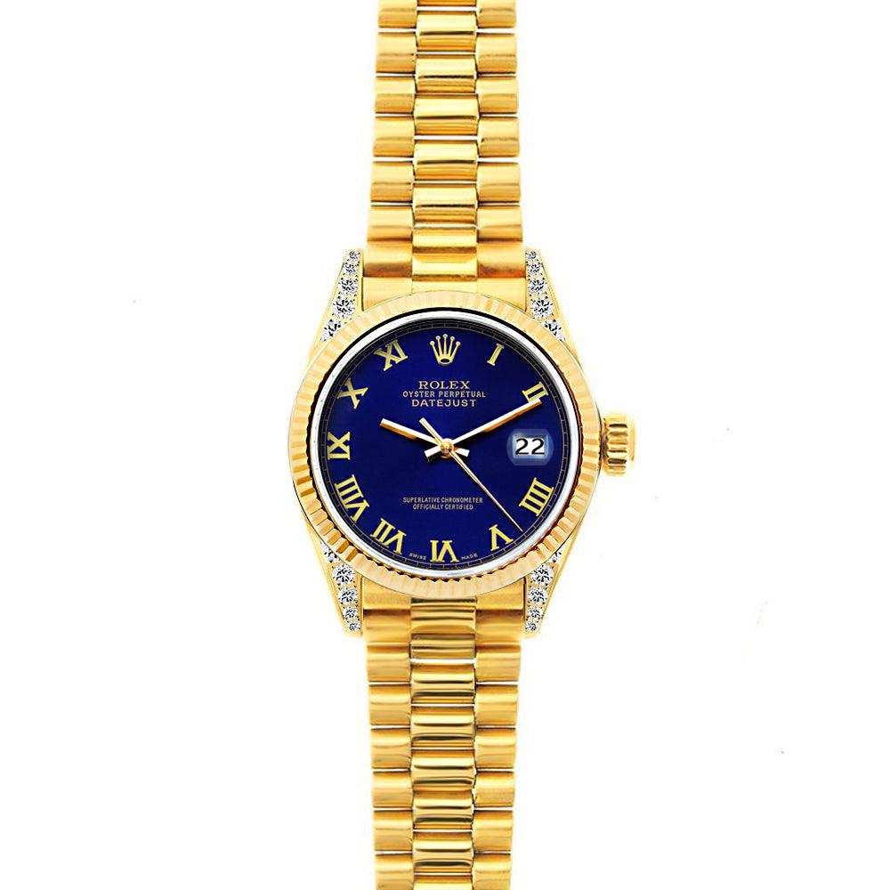 18k Yellow Gold Rolex Datejust Diamond Watch, 26mm, President Bracelet Ultramarine Dial w/ Diamond Lugs