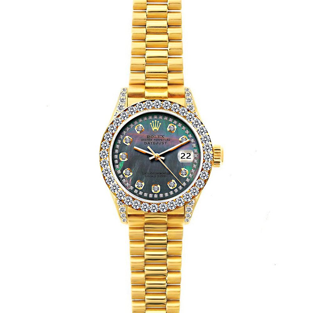 18k Yellow Gold Rolex Datejust Diamond Watch, 26mm, President Bracelet Mother of Pearl Dial w/ Diamond Bezel and Lugs