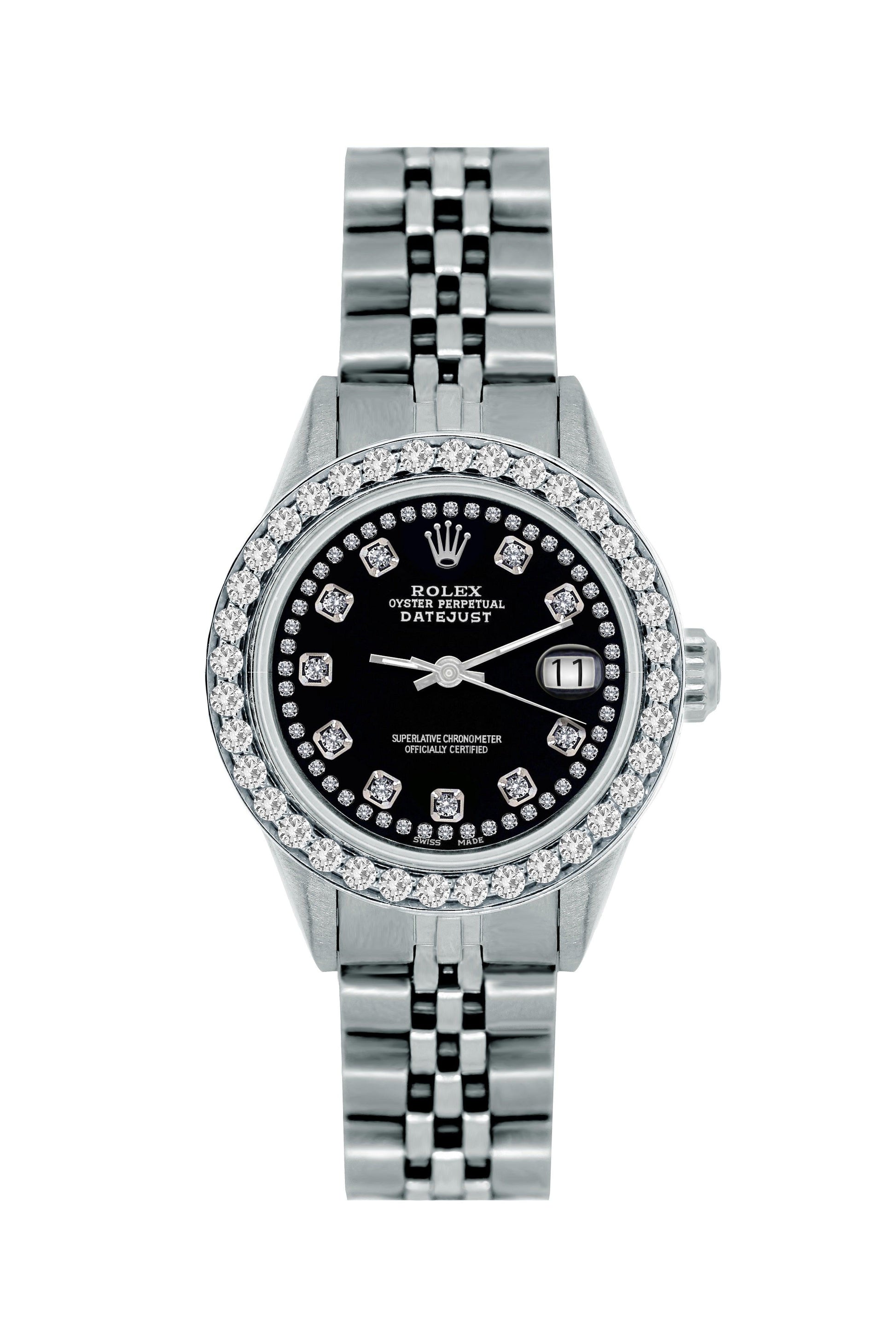 Rolex Datejust Diamond Watch, 26mm, Stainless SteelBracelet Black Dial w/ Diamond Bezel