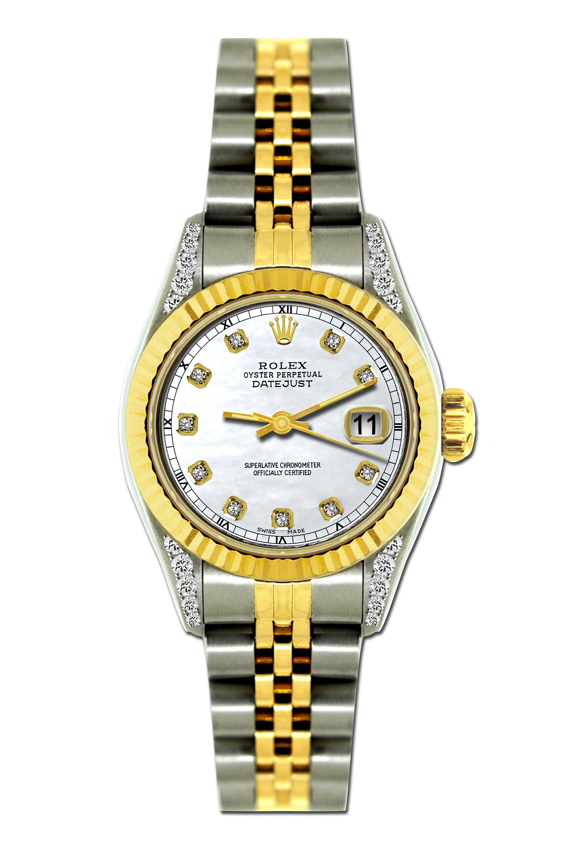Rolex Datejust Diamond Watch, 26mm, Yellow Gold and Stainless Steel Bracelet White Dial w/ Diamond Lugs