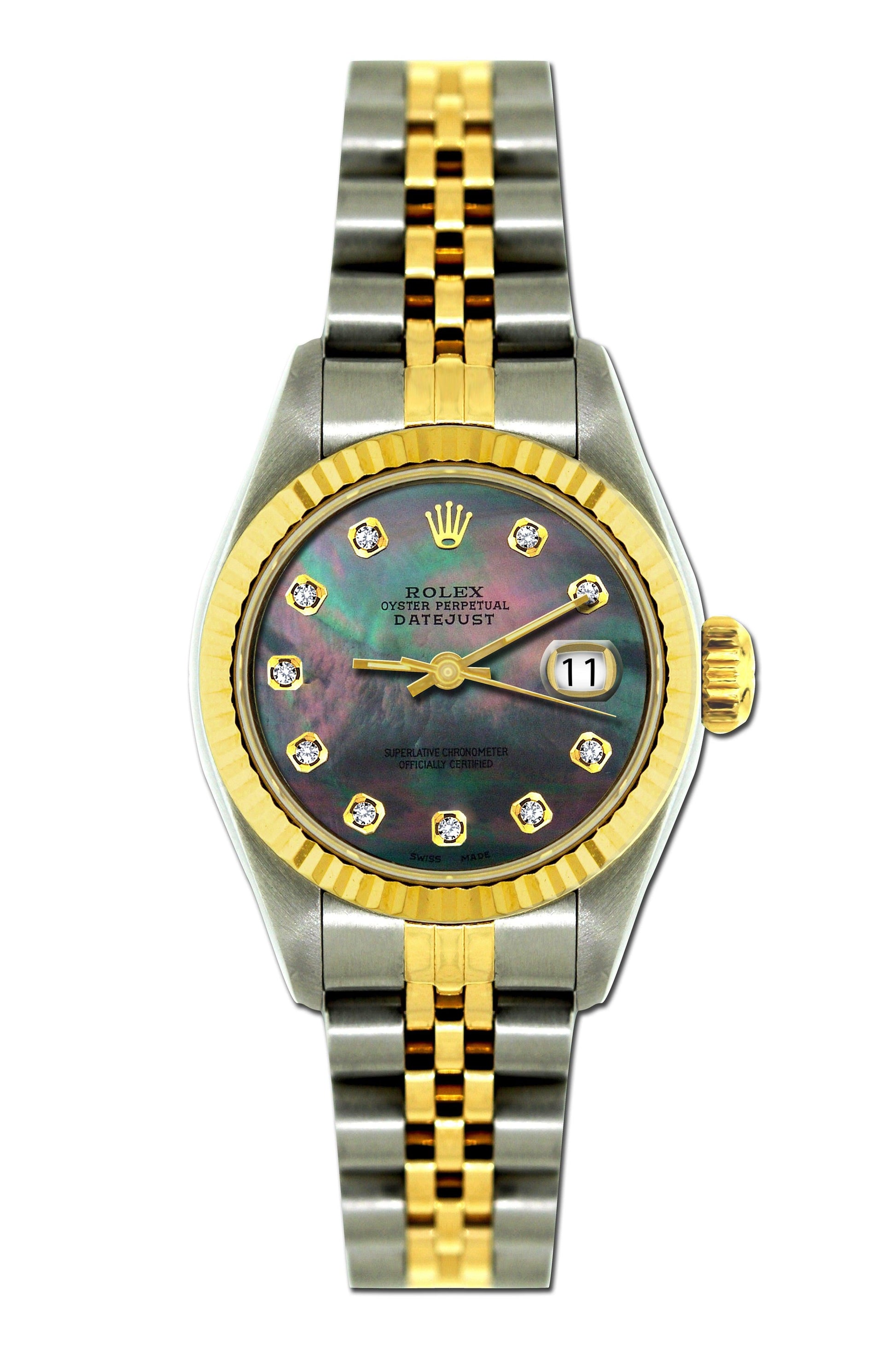 Rolex Datejust 26mm Yellow Gold and Stainless Steel Bracelet Black Mother of Pearl Dial