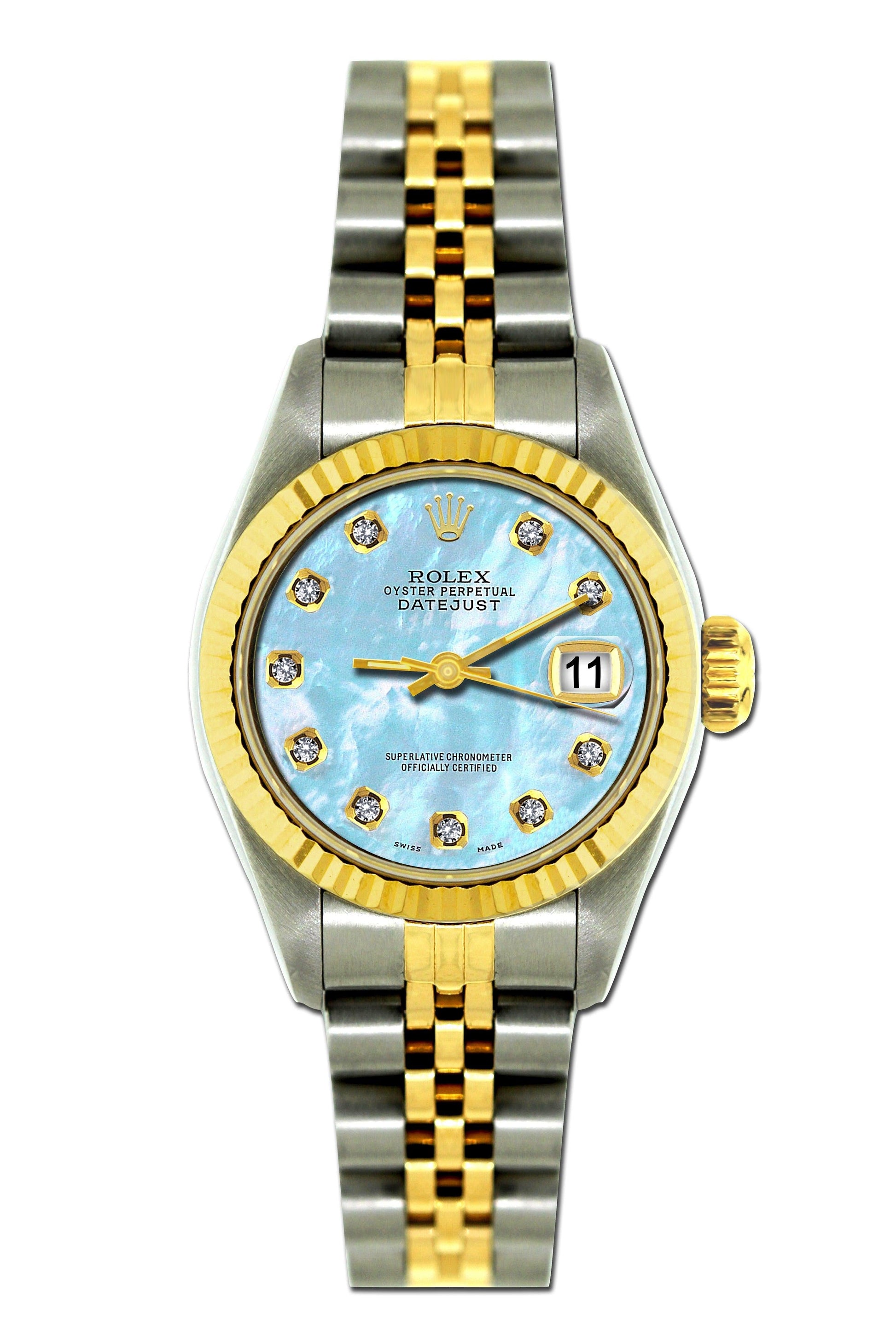 Rolex Datejust 26mm Yellow Gold and Stainless Steel Bracelet Pattens Blue Dial