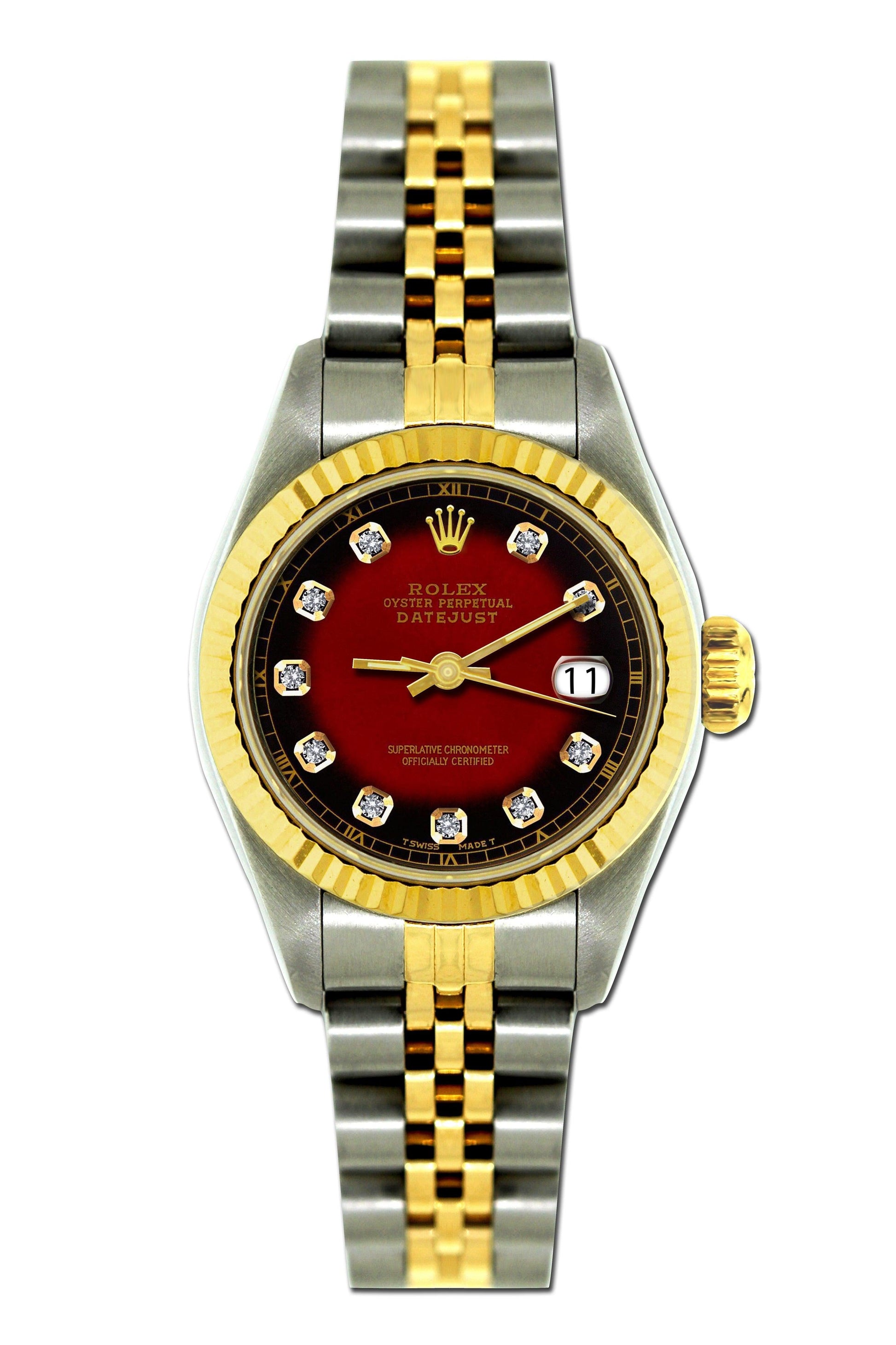 Rolex Datejust 26mm Yellow Gold and Stainless Steel Bracelet Red Dial