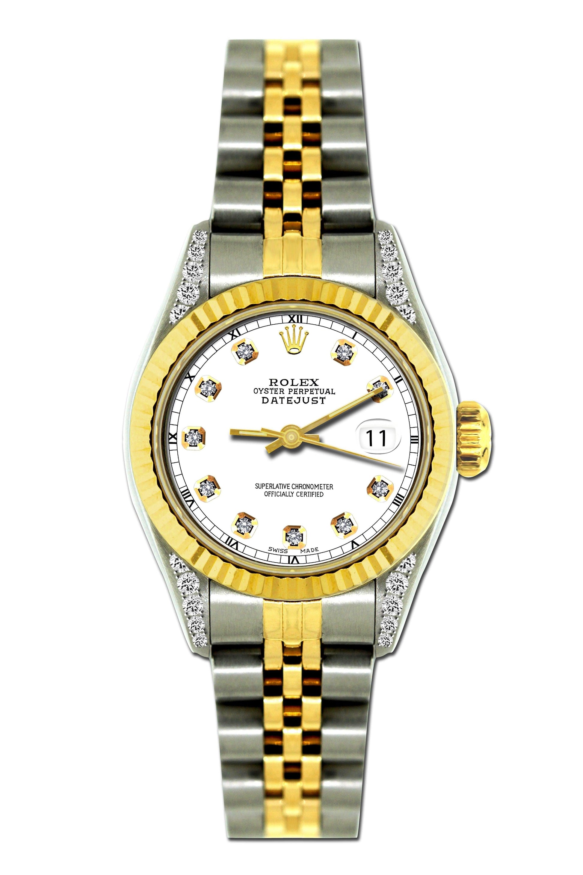 Rolex Datejust Diamond Watch, 26mm, Yellow Gold and Stainless Steel Bracelet White Dial w/ Diamond Lugs