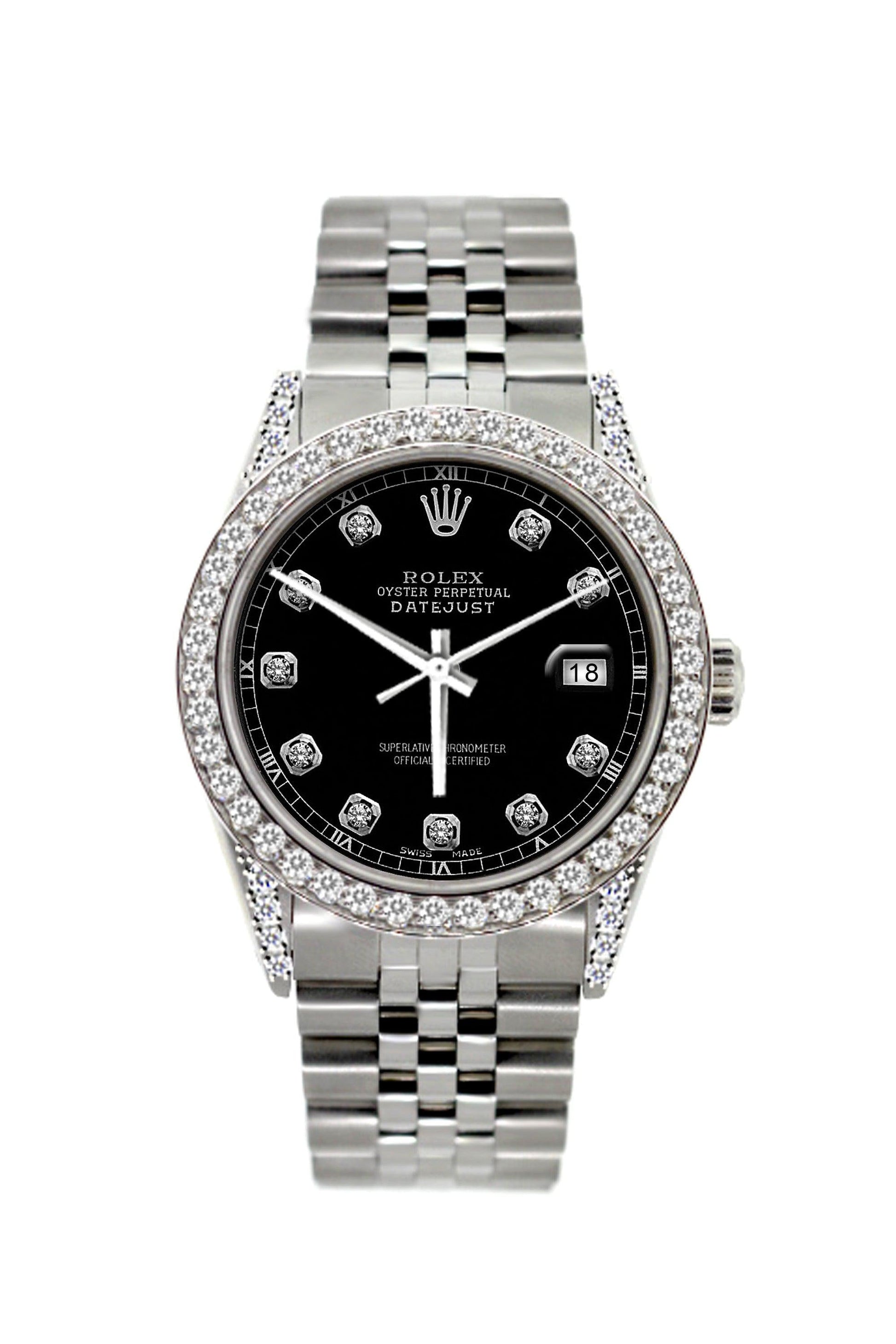 Rolex Datejust Diamond Watch, 36mm, Stainless Steel Black Dial w/ Diamond Bezel and Lugs
