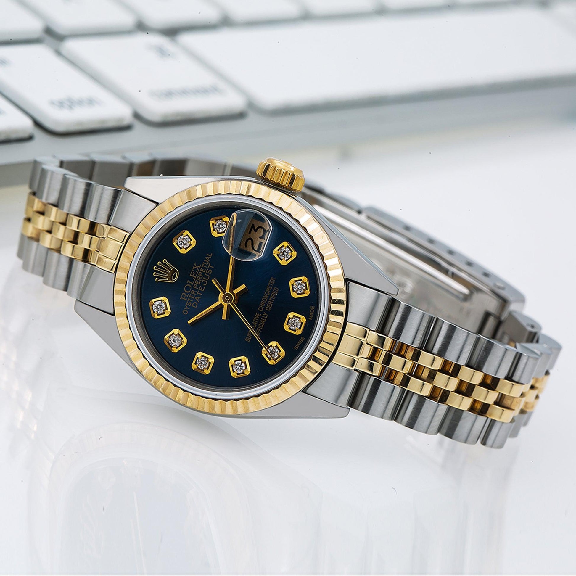 Rolex Datejust Diamond Watch 6917 26mm Blue Diamond Dial With Two Tone Jubilee Bracelet