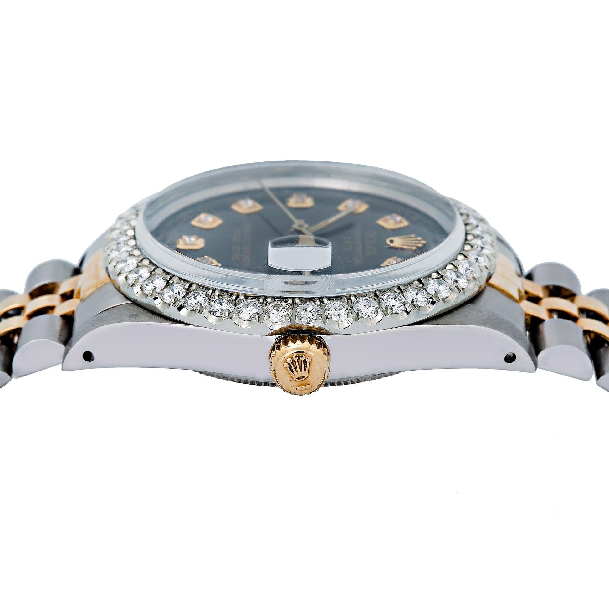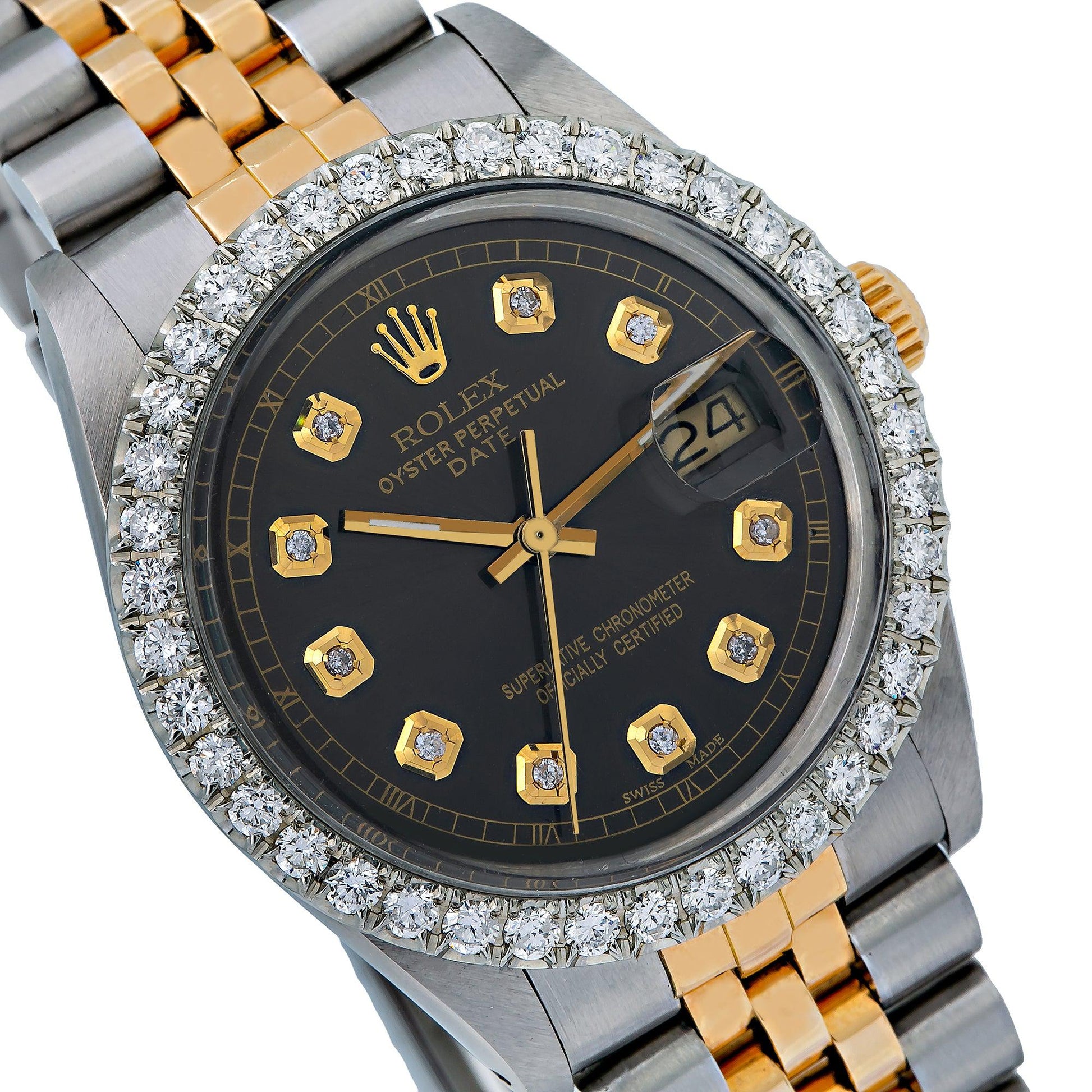 Rolex Oyster Perpetual Date 15053 34MM Black Diamond Dial With 1.30 CT Diamonds