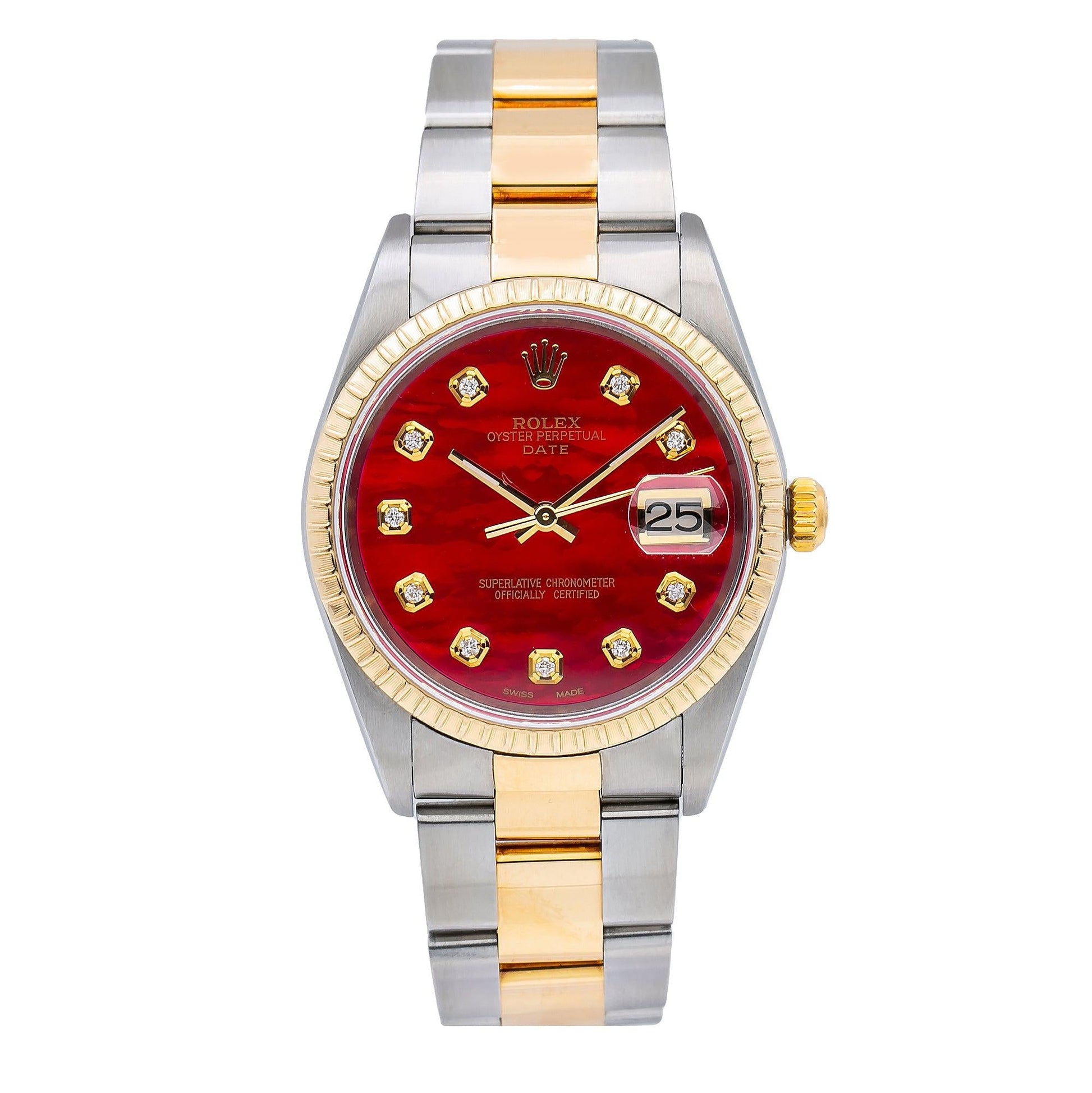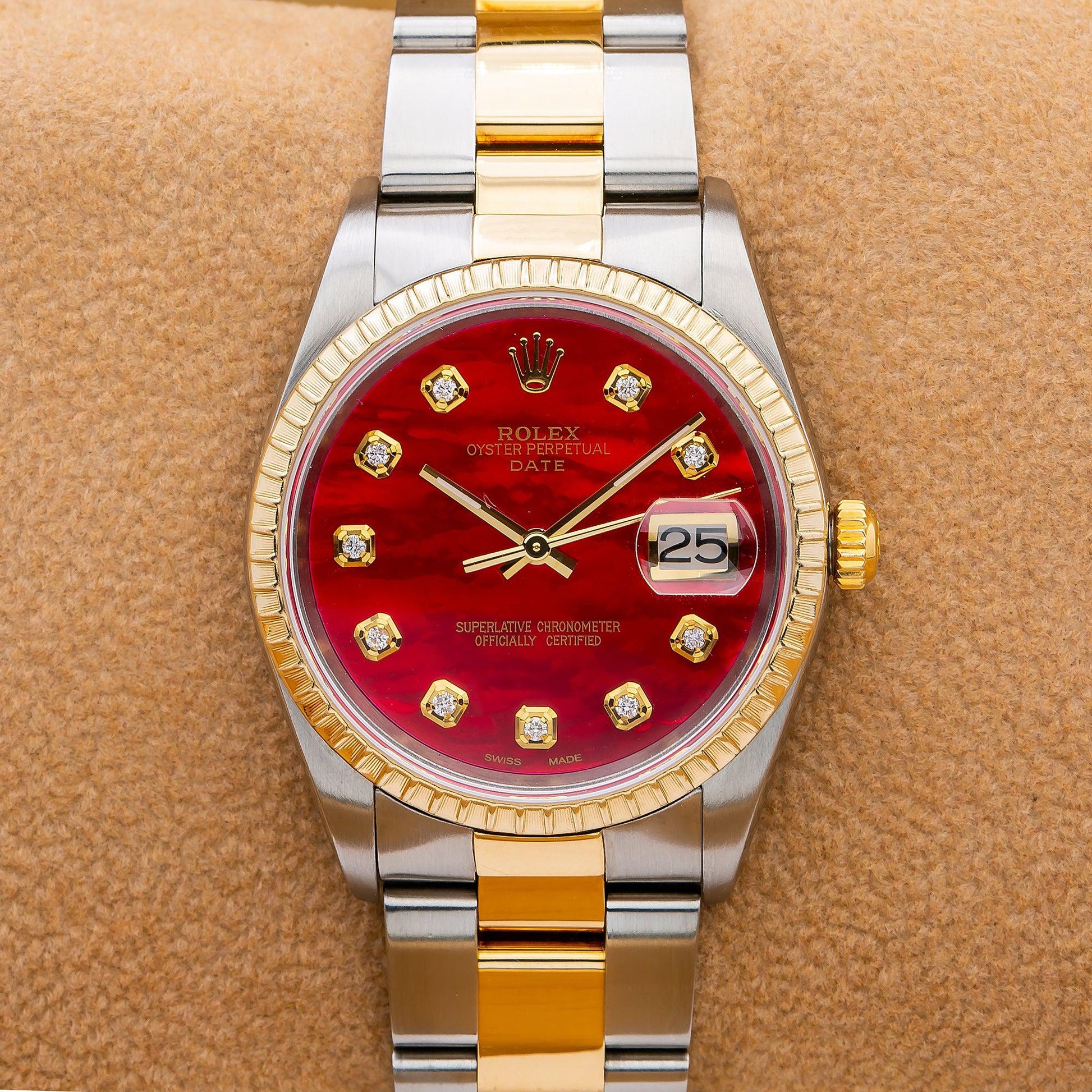 Rolex Oyster Perpetual Date 15223 34MM Red Diamond Dial With 1.20 CT Diamonds