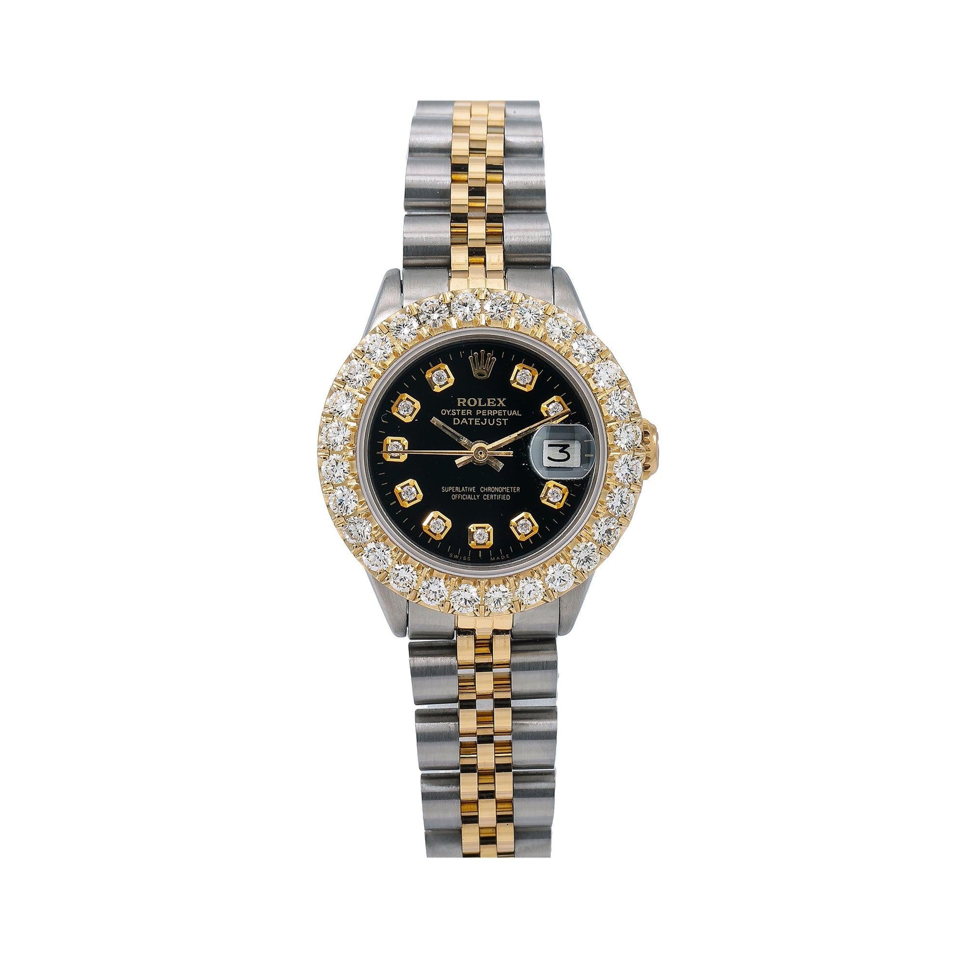 Rolex DateJust Diamond Watch, 26mm, Black Diamond Dial With Two Tone Jubilee Bracelet