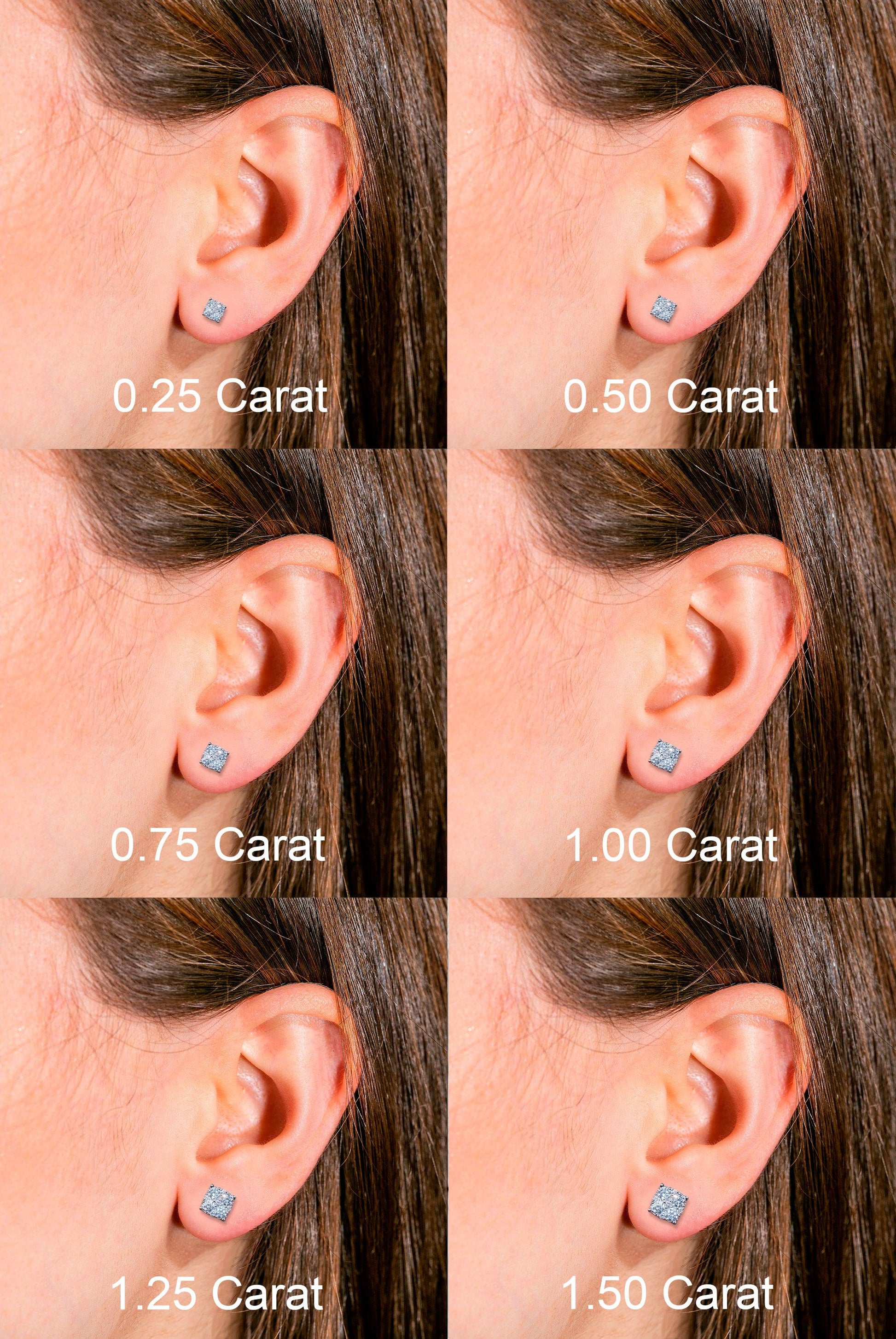 Small 14K White Gold Unisex Square Shaped Diamond Earrings