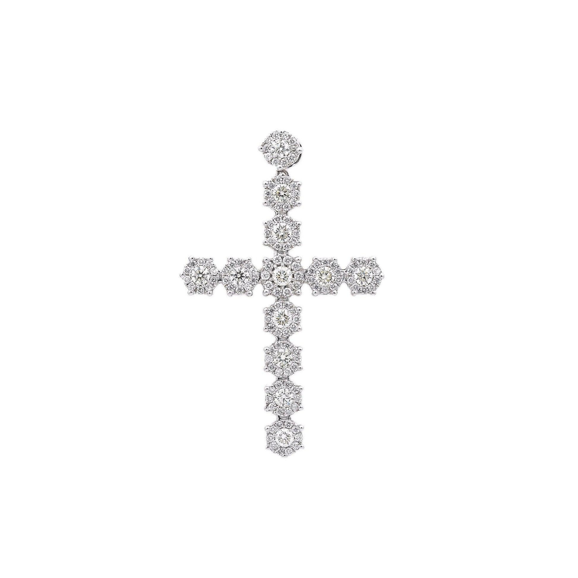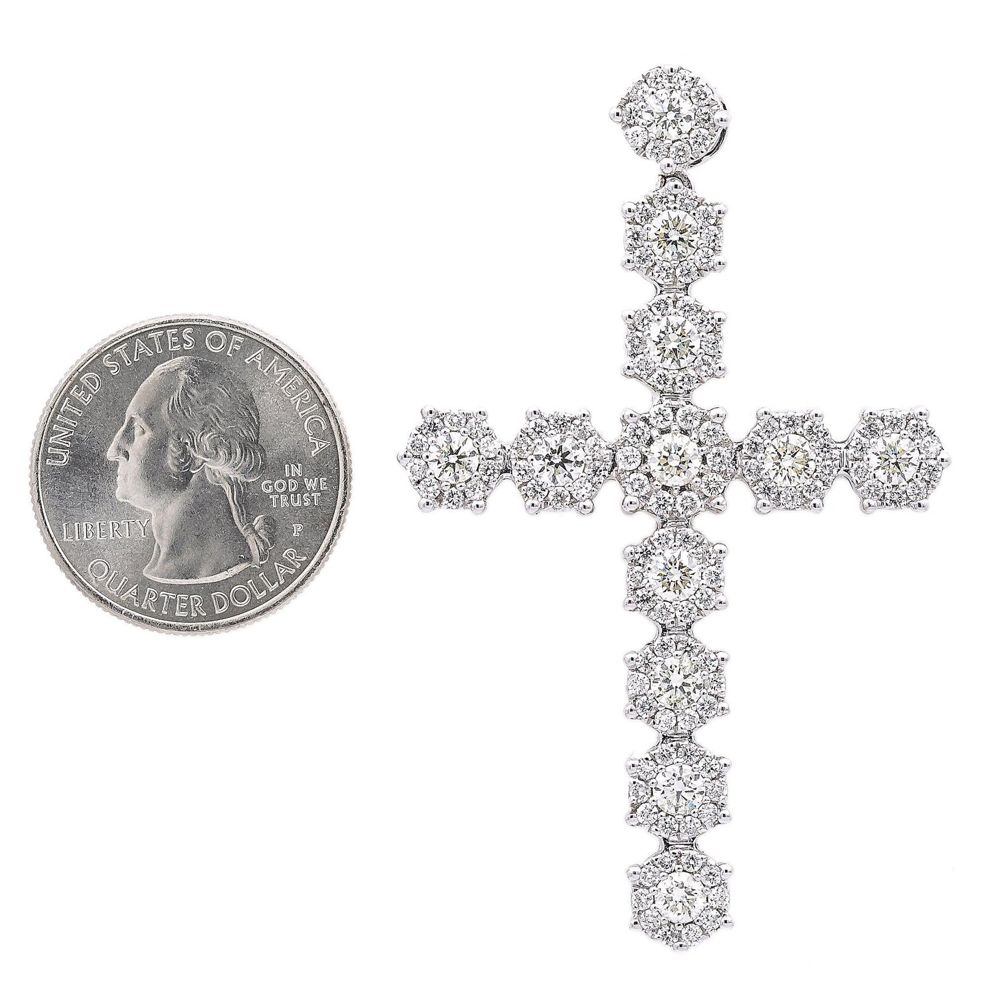 Unisex 14K White Gold Cross Pendant with 5.15 CT Diamonds