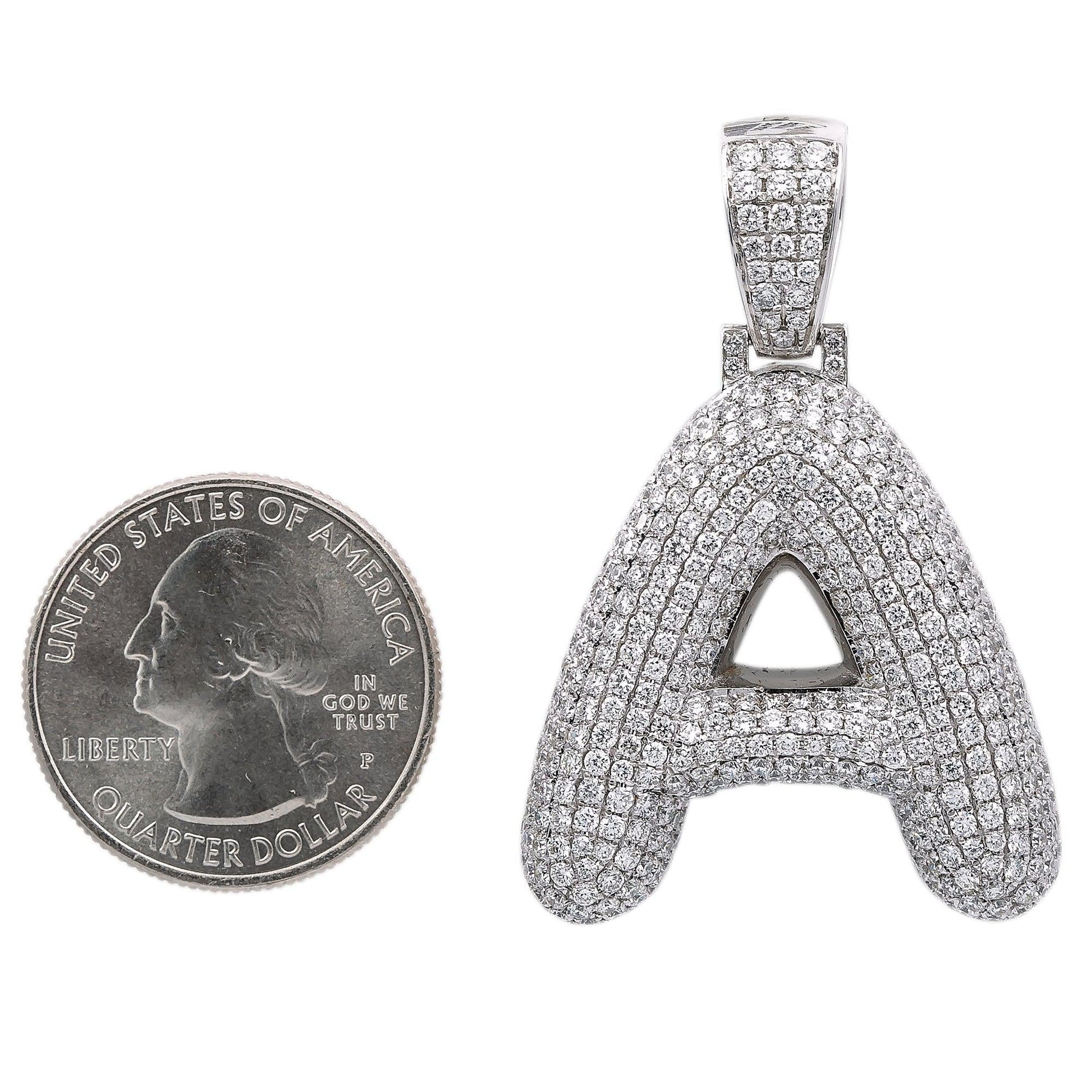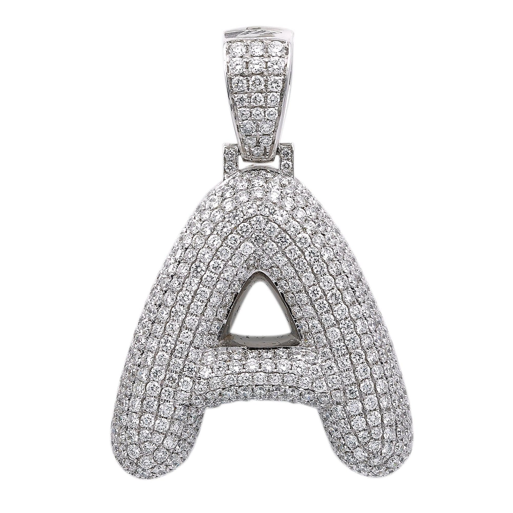 Unisex 14K White Gold Initial A Pendant with 6.99 CT Diamonds