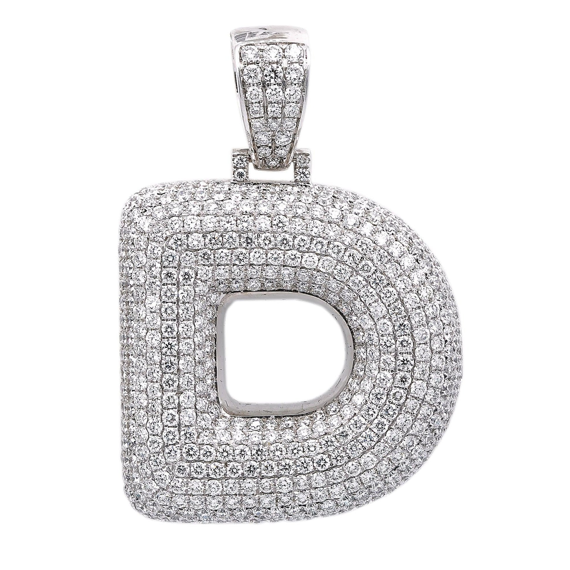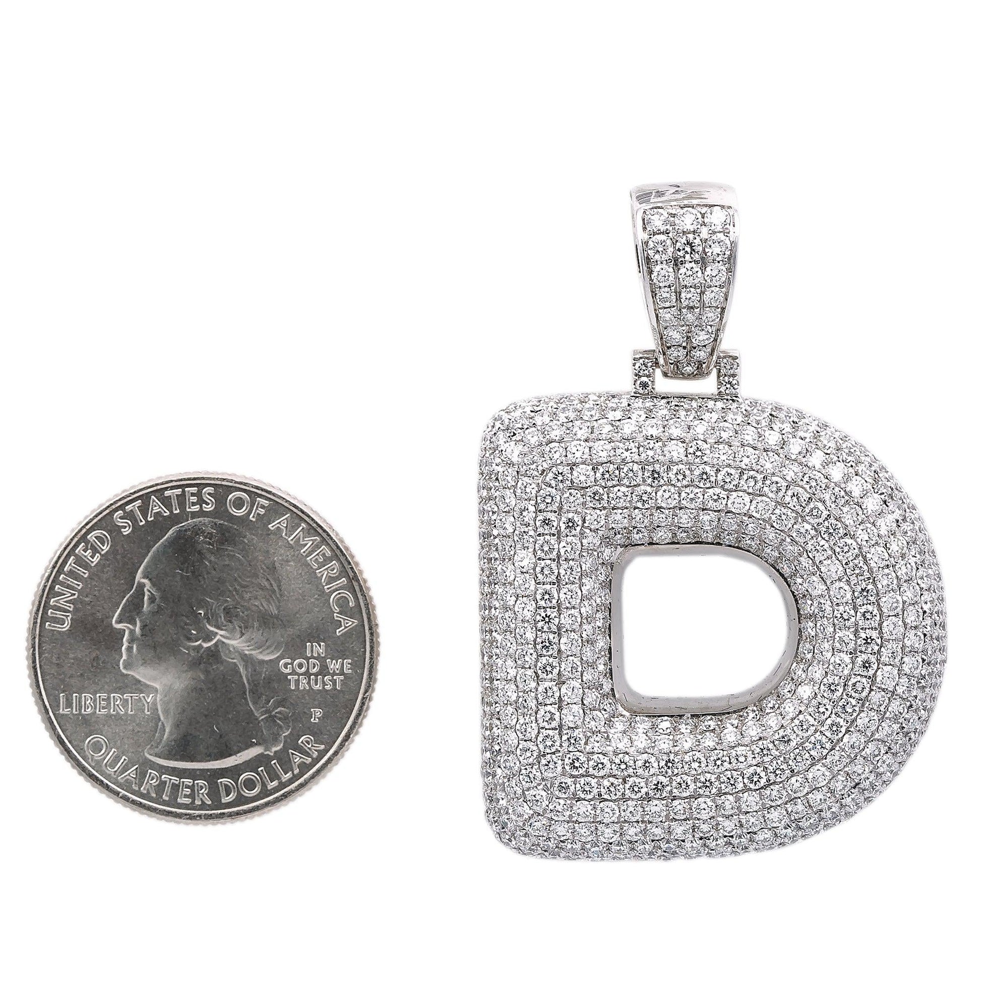 Unisex 14K White Gold Initial D Pendant with 7.99 CT Diamonds