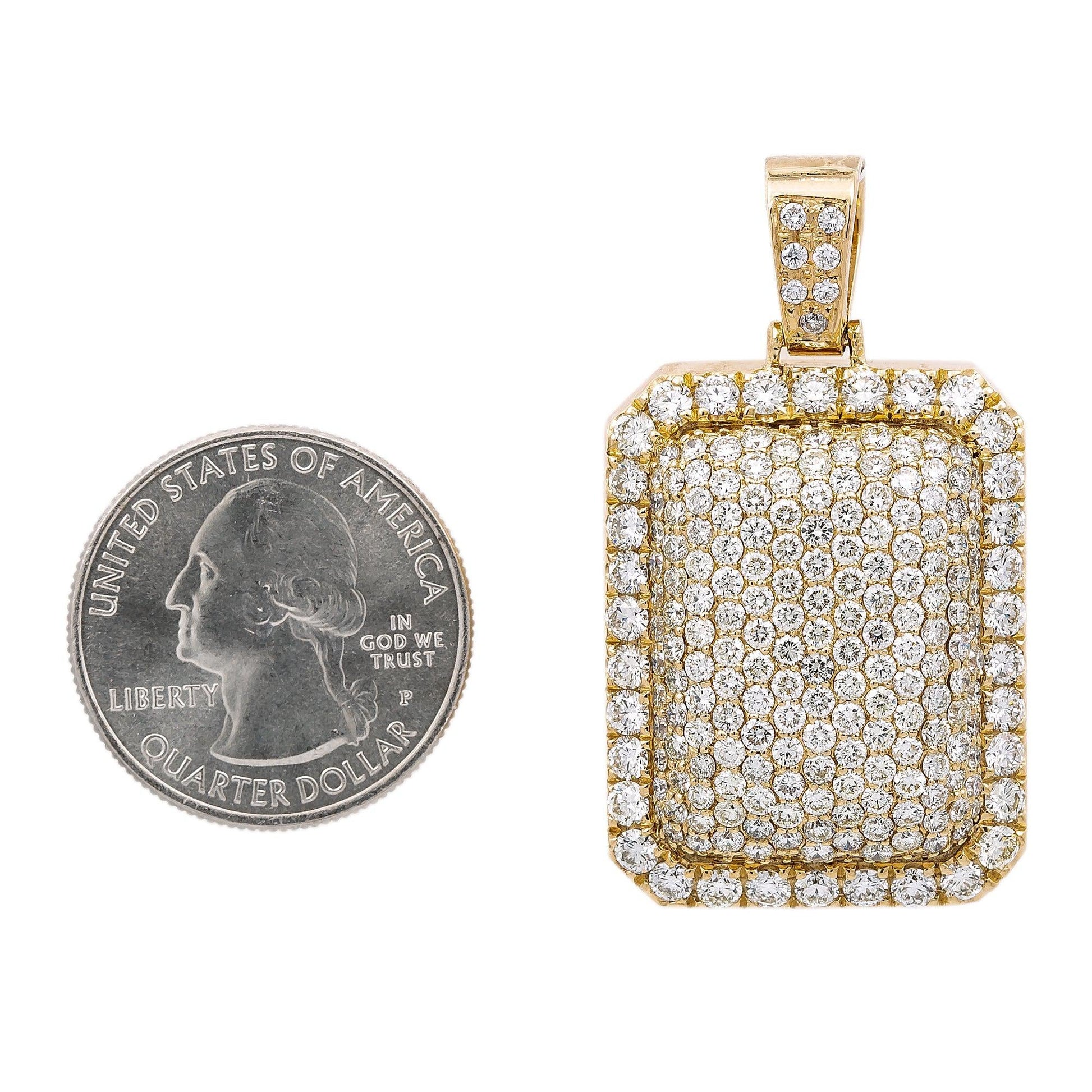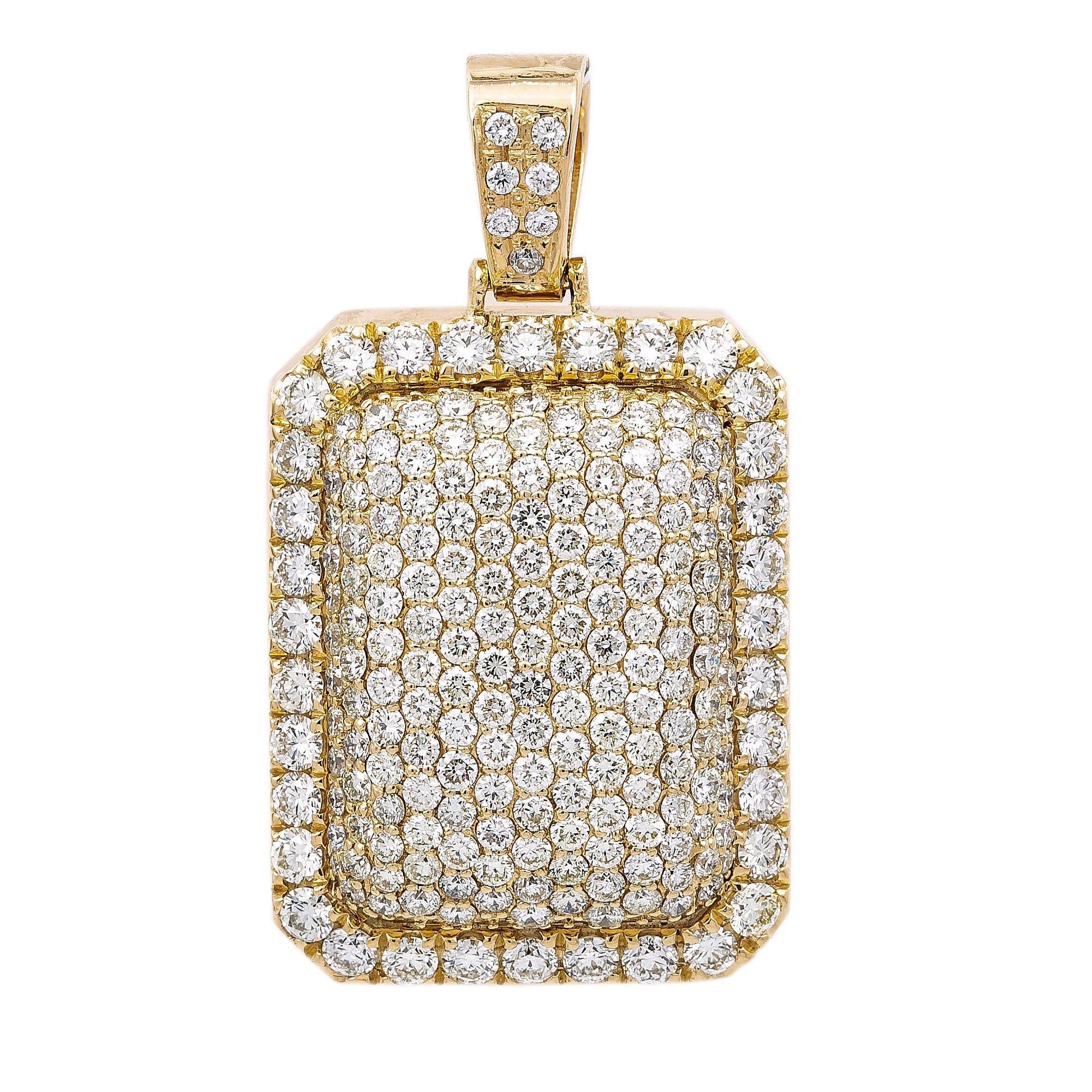 Unisex Rectangular 14K Yellow Gold Pendant with 6.90 CT Diamonds